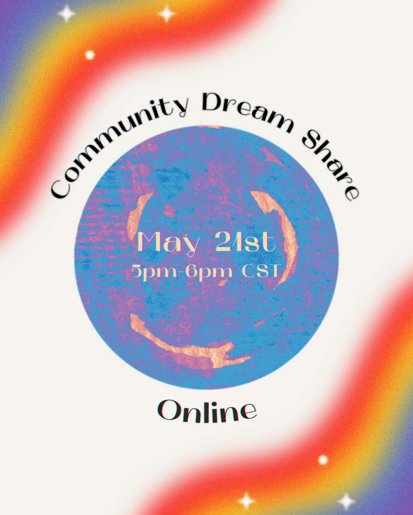 We’ll be talking about our current dream sharing philosophies and practices and you’ll get a chance to try it out and share dreams in breakout rooms. All are welcome whether you regularly remember your dreams or not.