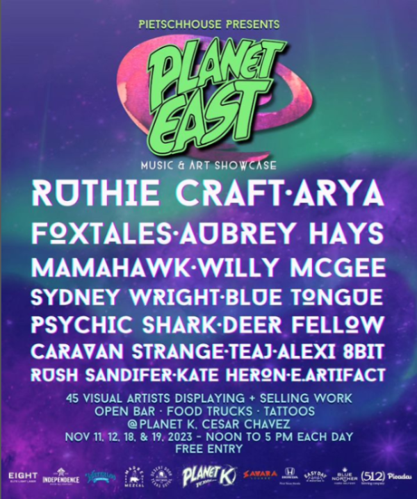 We’ll have an interactive installation for people to share their alien and outer space themed dreams at the Planet East showcase of the East Austin Studio Tour. Come by to check it out, add a dream, see over 45 visual artists vending, musical showcase, food trucks, and more.